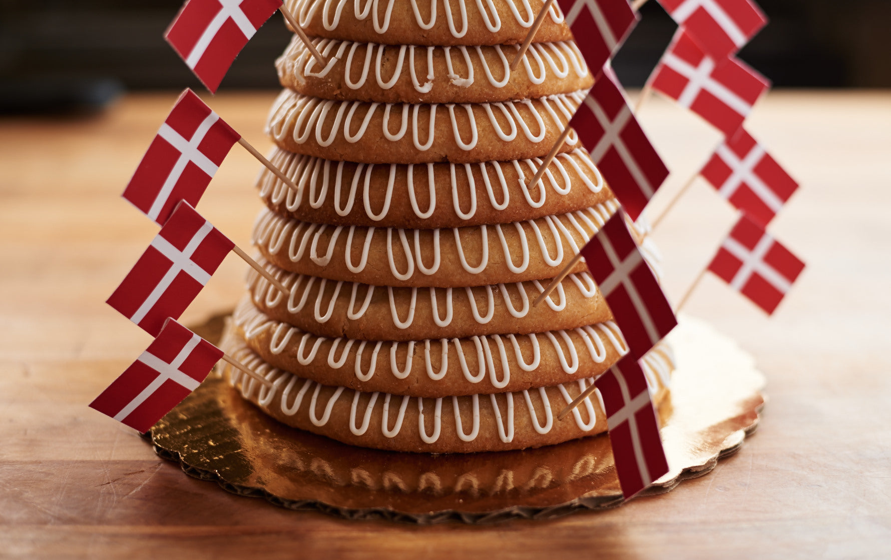 This stacked cake made from almond paste is a Scandinavian tradition. Usually served for weddings, New Year’s Eve and birthday celebrations, the rings are broken into pieces for serving.